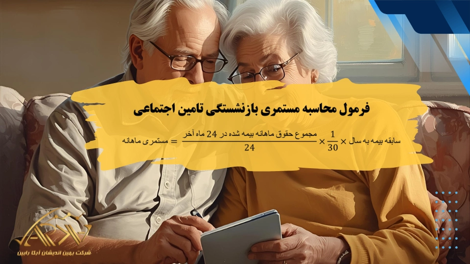 مجموع حقوق ماهانه بیمه شده در 24 ماه آخر / 24 × سابقه بیمه به سال / 30 = مستمری ماهانه